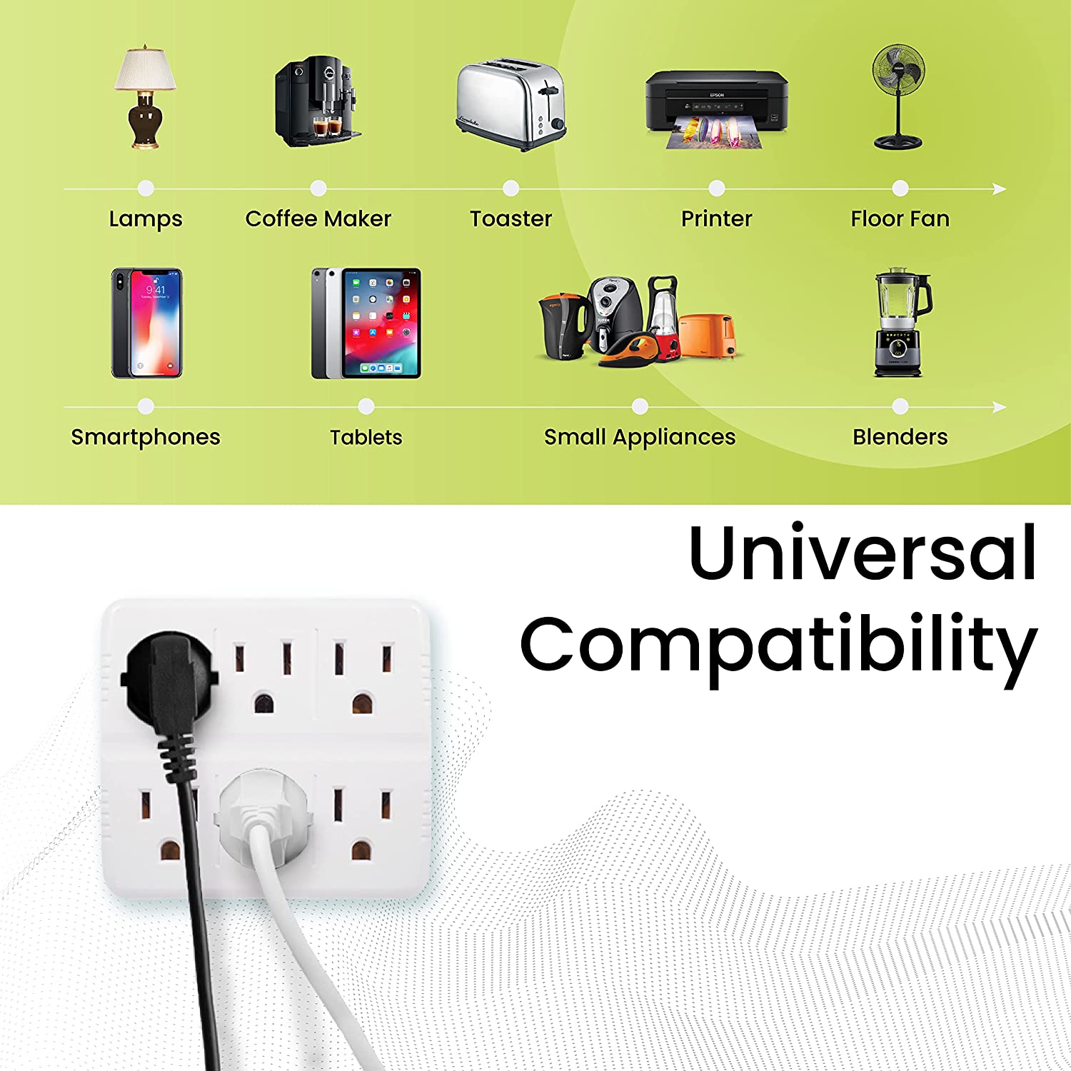 - Perfecto para computadoras, luces, electrodomésticos, equipos de cine en casa y más