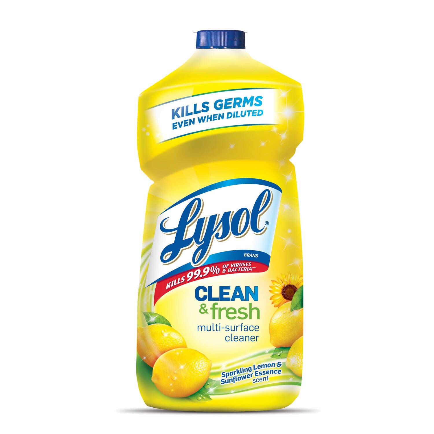 Lysol All Purpose Cleaner Pour se puede usar en superficies en toda la casa, desde la cocina hasta el baño y las áreas del hogar. Comienza a limpiar al contacto y corta la grasa resistente y la espuma de jabón. Lysol All Purpose Cleaner ayuda a lograr superficies frescas y saludables y mata el 99.9 por ciento de los gérmenes para ayudar a brindar tranquilidad a las familias ocupadas.