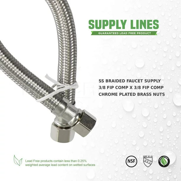 Braided Faucet Supply Line Connector with 3/8 In FIP Female Compression Fitting Stainless Steel