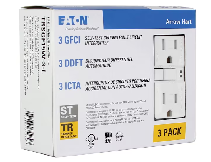 15-Amp 125-Vac Tamper-Resistant GFCI Duplex Receptacle, Self-Test - 3pk