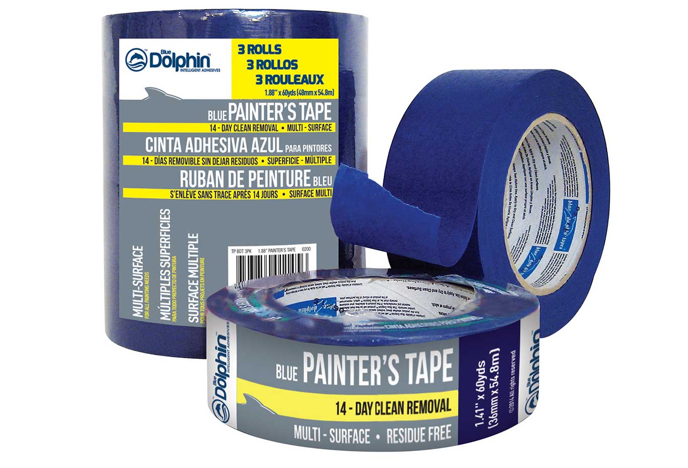 Blue Dolphin Painter’s Tape is the best interior tape for professionals and DIYers looking for clean edges and excellent result. Our medium tack SmartSKIN™ technology combined with the thin crepe paper, prevents paint bleeding and leaves no residue for up to 14 days. The solvent-free adhesive is excellent for use on multiple surfaces, including lacquered or varnished woodwork, glass, plastic, metal doorknobs, window frames and more.