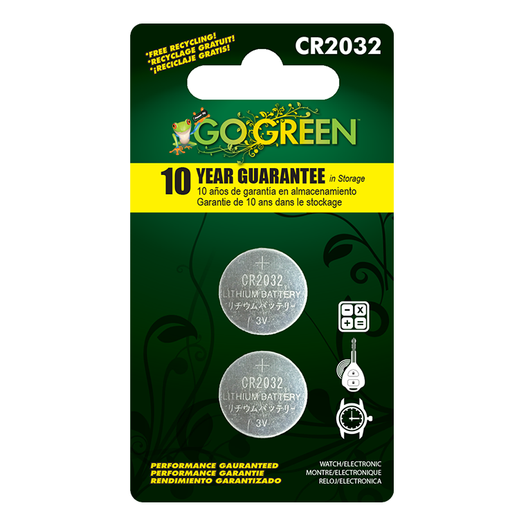 The GoGreen Power® Alkaline 2032 2 pack is a smart choice for eco-conscious consumers. GoGreen makes the world's first batteries with no toxic lead, cadmium, or mercury. We need batteries to power critical devices in our lives from TV remotes to the kids' favorite toys but disposing of them in a landfill is bad for the environment. As they break down, they can leach chemicals into groundwater and release known carcinogens.