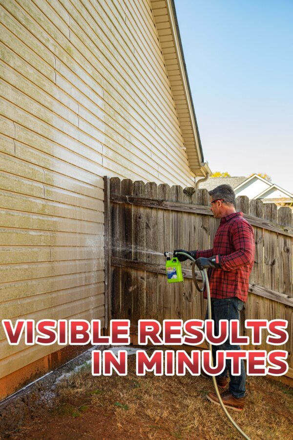 - CLEANS AND BRIGHTENS IN MINUTES: Blast away dirt, mold and algae stains with Mold Armor E-Z House Wash. Your siding will look bright and new – no ladder or scrubbing required. Cleans up to 4,500 sq. ft.