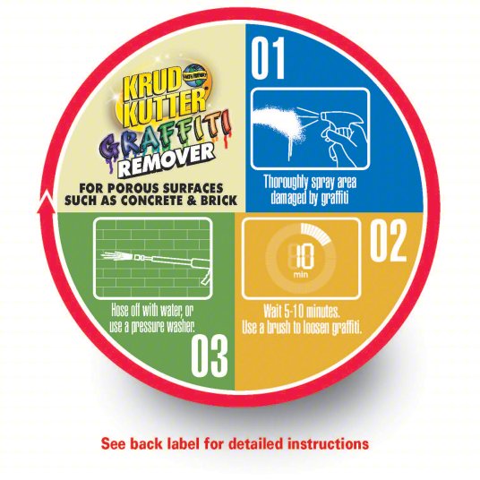 - Ready to use formula: spray graffiti, wait 3-10 minutes and rinse or pressure wash off