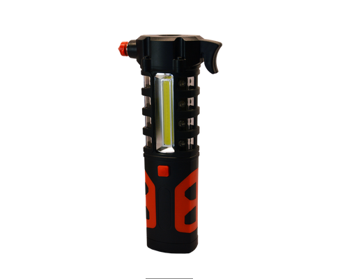 The Houdini features COB (Circuit on Board) LED technology and provides a red blinking emergency light, which can be quite handy if you encounter roadside breakdowns. A premium magnetic base allows you to attach the light onto any metallic surface. In vehicle safety systems, the Houdini can be used as a seatbelt cutter and window breaker. The flashlight is powered by 3 AA batteries (included).