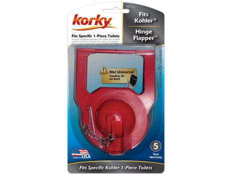 The Fits Kohler Hinge Flapper is designed to fit Kohler Hinge-Style parts 84995 and 1000490. The Kohler toilet parts' exclusive longest lasting red rubber resists chlorine, bacteria, city water treatment, hard water, and well water. This type of toilet flapper is made of flexible rubber for a tight seal and easy to install, the 2011 toilet parts include: (1) Kohler Toilet Flapper and (1) Stainless Steel Chain.