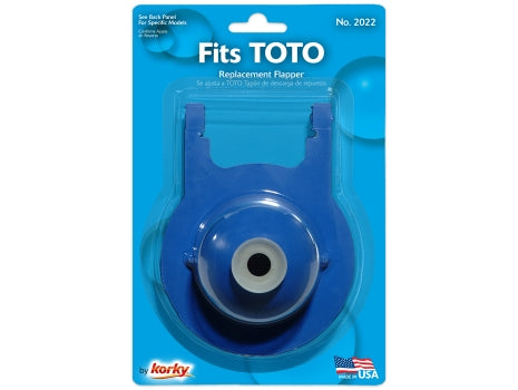 The Fits TOTO 3 inch Flapper by Korky features an oversized sealing surface to fit large 3 inch TOTO flush valves. The exclusive longest lasting blue rubber resists chlorine, bacteria, city water treatment, hard water, and well water. Replacement for TOTO flapper model THU140S. This type of toilet flapper is made of flexible rubber for a tight seal and easy to install, the 2022 includes: (1) Large 3 inch Flapper and (1) Stainless Steel Chain. Fits the following models: