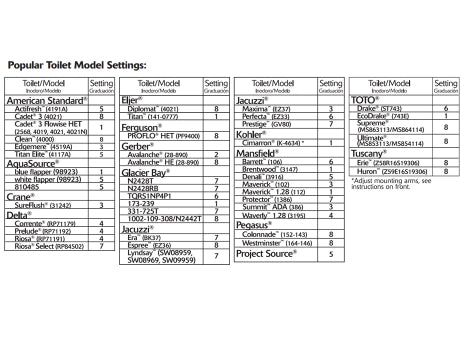 - Fits: American Standard, Aquasource, Crane, Eljer, Ferguson, Gerber, Glacier Bay, Jacuzzi, Kohler, Mansfield, Pegasus, and TOTO
