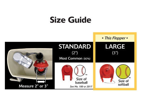 The Korky 3" Universal Toilet Tank Flapper is adjustable to match your original toilet's performance. It has a universal design and will fit oversized 3 inch flush valves found in newer 1.6 and 1.28 gpf toilets since the year 2005. The exclusive longest lasting red rubber resists chlorine, bacteria, city water treatment, hard water, and well water. The adjustable toilet tank flapper has multiple settings to ensure it fits popular 3 inch toilet models including: Kohler, TOTO, American Standard, Gerber and Mansfield. Made of flexible rubber for a tight seal and easy to install, the 3060 toilet parts include: Adjustable 3 inch Flapper and Stainless Steel Chain.