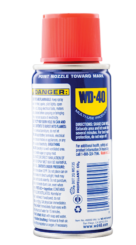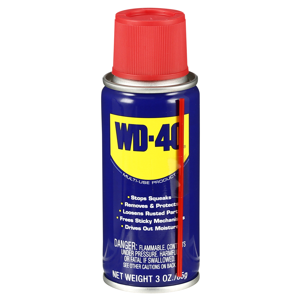 WD-40 Multi-Use Product protects metal from rust and corrosion, penetrates stuck parts, displaces moisture and lubricates almost anything. The WD-40 Multi-Use Product 3oz Handy Can is the perfect travel-sized problem solver.