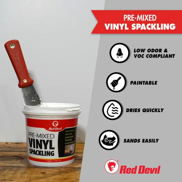 - Red Devil Pre-Mixed Vinyl Spackling can be used on Drywall, Plaster, Wallboard, Wood & Primed Metal
