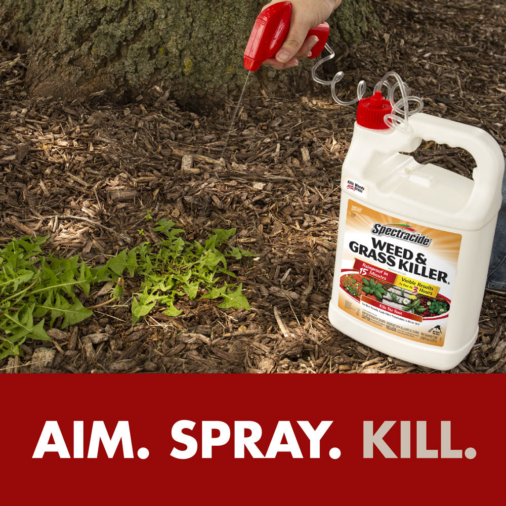 This product is a non-selective herbicide that will kill any vegetation contacted. It enters plants through the leaves and moves down to the roots. This will ensure that the entire plant is eliminated. Avoid direct spray or drift onto desirable plants, lawn grasses, shrubs, and trees. Protect desirable plants and vegetation with a piece of plastic or cardboard. If desirable plants are accidentally sprayed, wash plants with water immediately.